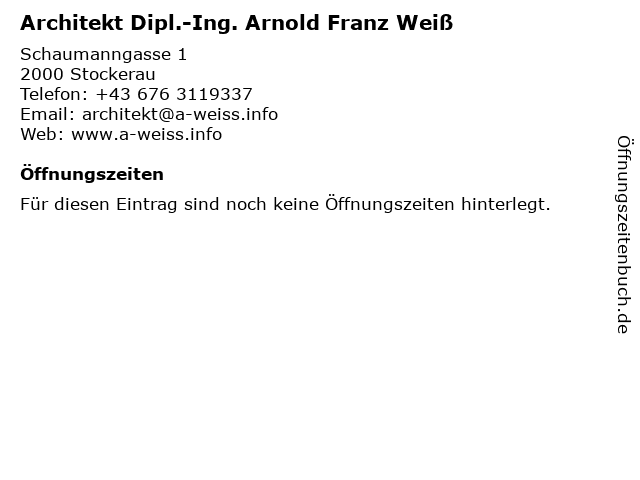 | Architekt Dipl.-Ing. Arnold Franz Weiß anrufen | |