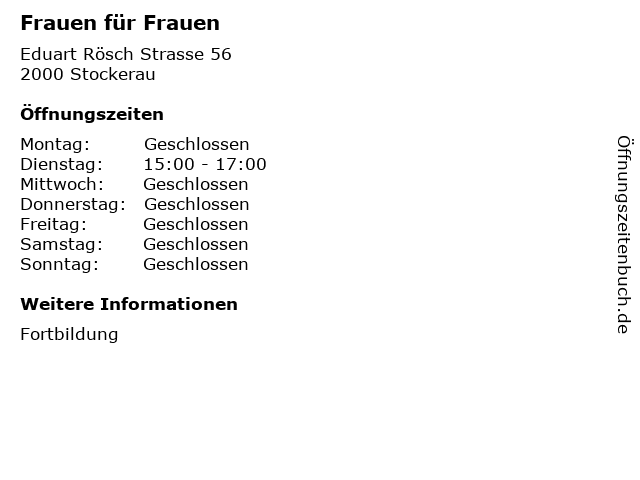| Öffnungszeiten Frauen für Frauen in Stockerau anzeigen | |