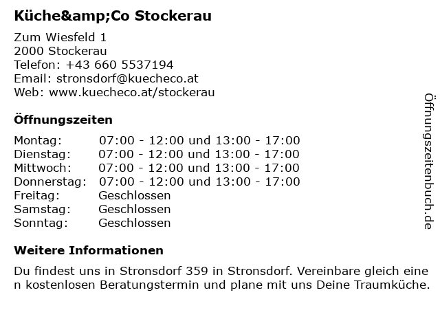 | Öffnungszeiten Küche&Co Stockerau in Stockerau anzeigen | |