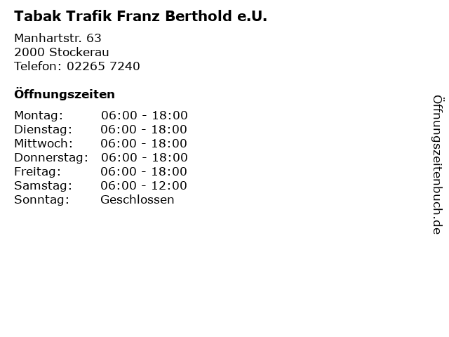 Branchen & Suchbegriffe zu Tabak Trafik Franz Berthold e.U.:berthold, e.u., franz, magazine, tabak, tabakwaren, trafik, zeitungen |