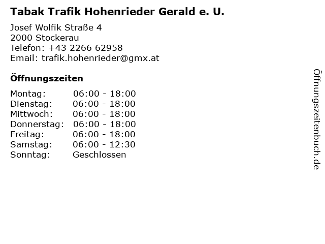 Branchen & Suchbegriffe zu Tabak Trafik Hohenrieder Gerald e. U.:e., feuerzeug stockerau, gerald, hohenrieder, kiosk stockerau, lotto stockerau, tabak, tabak stockerau, tabakwaren stockerau, trafik, trafik stockerau, u., zeitschriften stockerau, zigaretten stockerau |