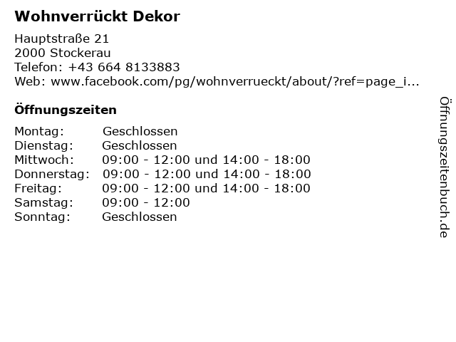 | Öffnungszeiten Wohnverrückt Dekor in Stockerau anzeigen | |