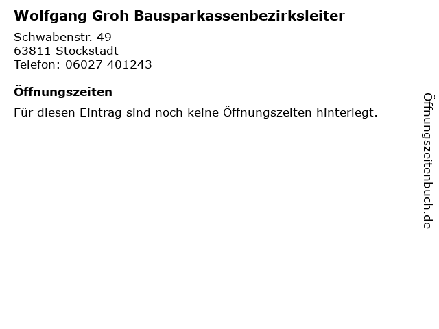 | Wolfgang Groh Bausparkassenbezirksleiter anrufen | |