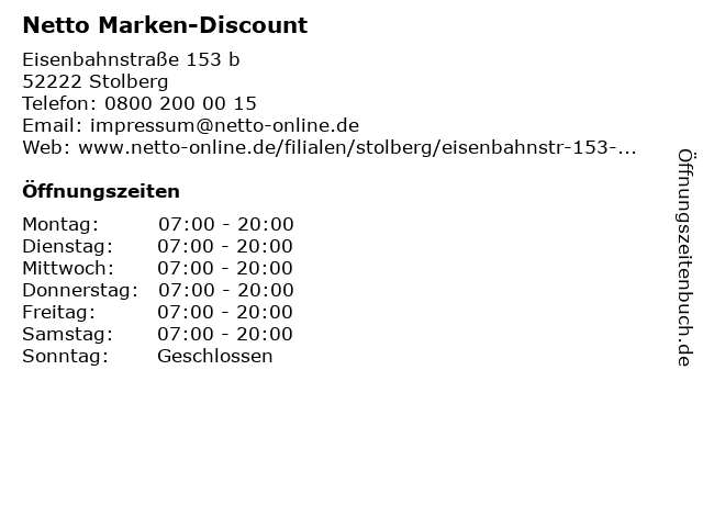 | Öffnungszeiten Netto Marken-Discount in Stolberg anzeigen | |