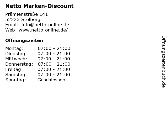 | Öffnungszeiten Netto Marken-Discount in Stolberg anzeigen | |