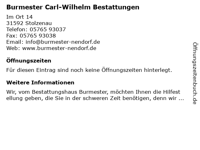 | Burmester Carl-Wilhelm Bestattungen anrufen | |