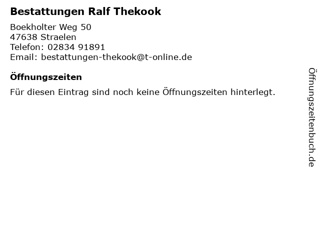 Öffnungszeiten Bestattungen Ralf Thekook in Straelen anzeigen | |