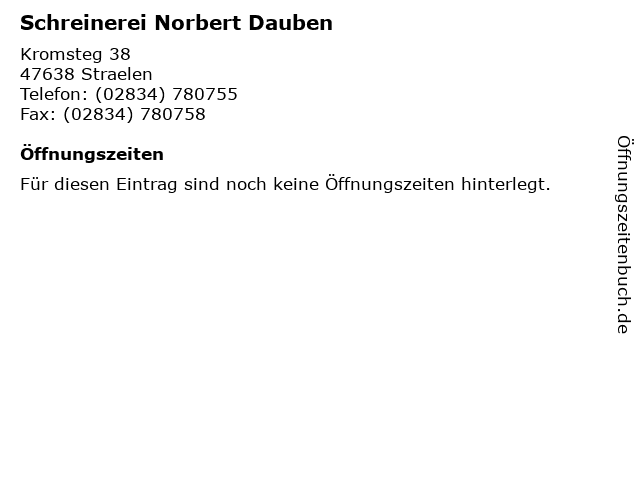 | Öffnungszeiten Schreinerei Norbert Dauben in Straelen anzeigen | |
