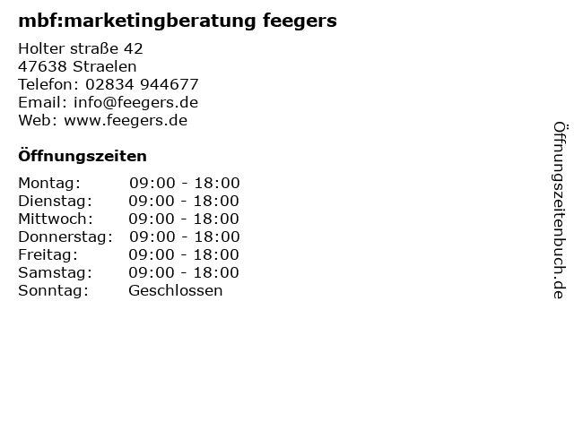 Branchen & Suchbegriffe zu mbf:marketingberatung feegers:feegers, marketingberatung, mbf |