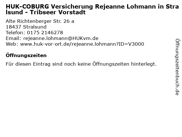 | HUK-COBURG Versicherung Rejeanne Lohmann in Stralsund - Tribseer Vorstadt anrufen | |