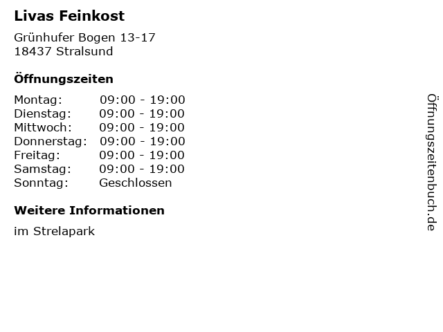 | Öffnungszeiten Livas Feinkost in Stralsund anzeigen | |