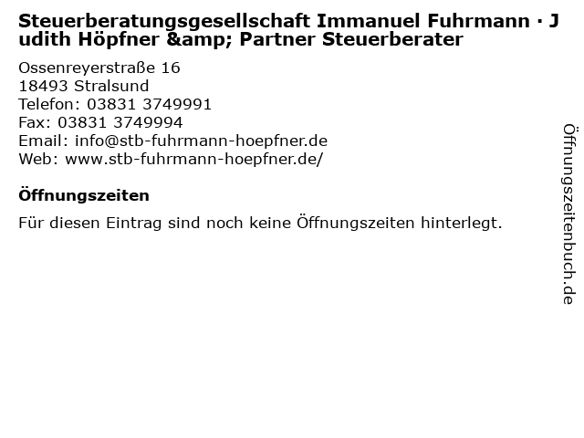 | Steuerberatungsgesellschaft Immanuel Fuhrmann · Judith Höpfner & Partner Steuerberater anrufen | |