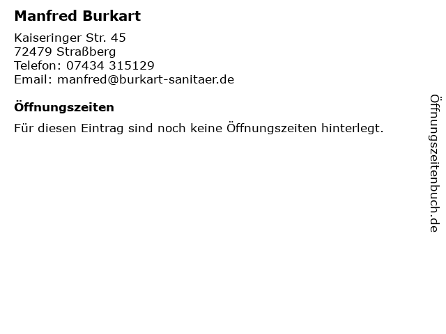 | Öffnungszeiten Manfred Burkart in Straßberg anzeigen | |