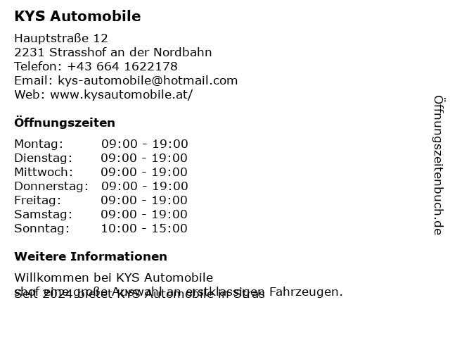 Branchen & Suchbegriffe zu KYS Automobile:auto kaufen, autohändler, automobile, crazy cars, exportfahrzeuge, gebrauchtwagen, günstige autos, günstige fahrzeuge, kompetenter autohändler, kys, preiswert auto kaufen, strasshof autohaus, top fahrzeuge |