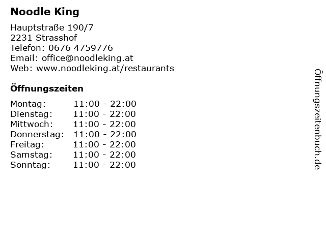 | Öffnungszeiten Noodle King in Strasshof anzeigen | |