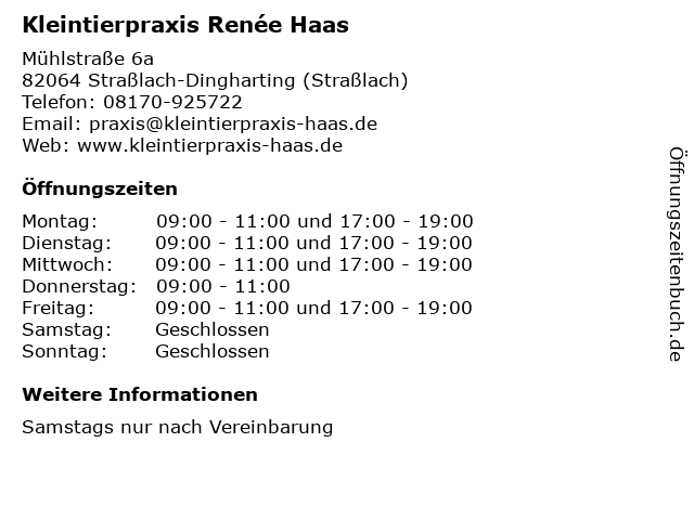 4 Tierarzt Dr. Max Hildenbrand - Kleintierpraxis (Entfernung: 12,09 km) Grubigsteinstr 7 a, 82515 Wolfratshausen 5 Kleintierpraxis Dr. med. vet. Alexia Plochmann (Entfernung: 12,35 km) Oberlandstraße 26, 82335 Berg-Aufhausen 6 |