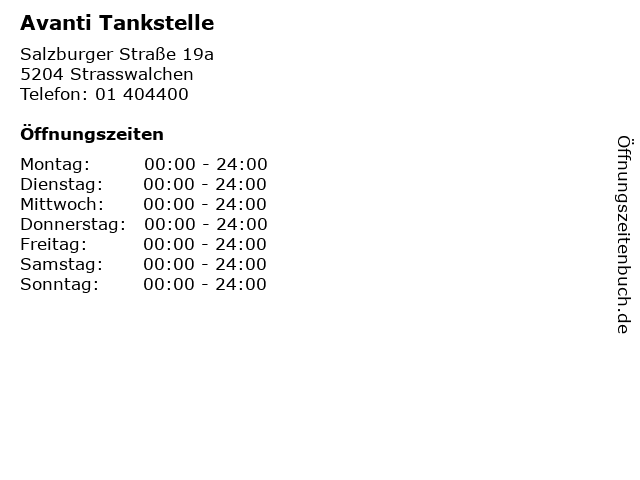 | Öffnungszeiten Avanti Tankstelle in Strasswalchen anzeigen | |