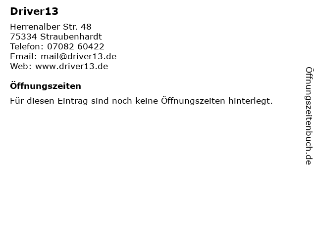 | Öffnungszeiten Driver13 in Straubenhardt anzeigen | |