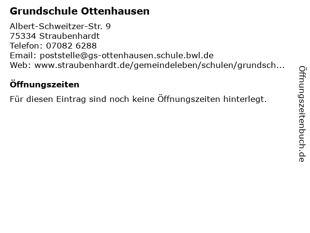| Öffnungszeiten Grundschule Ottenhausen in Straubenhardt anzeigen | |