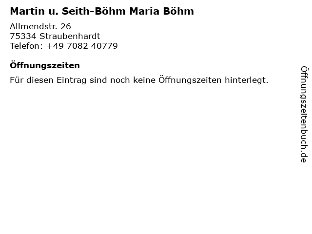 | Martin u. Seith-Böhm Maria Böhm anrufen | |