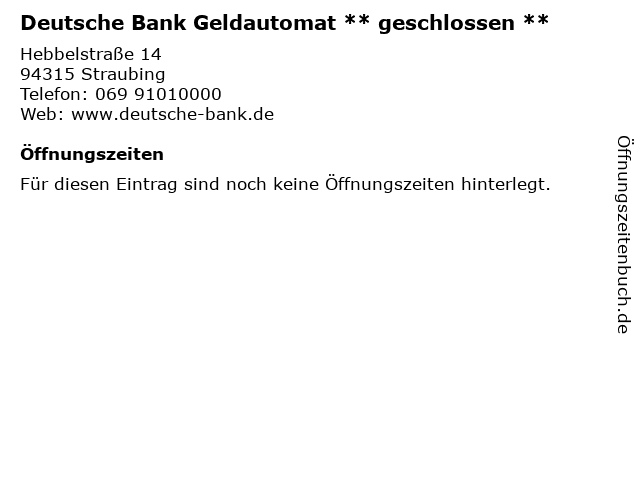 | Deutsche Bank Geldautomat ** geschlossen ** anrufen | |