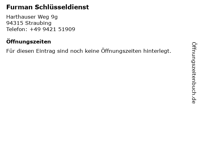 | Öffnungszeiten Furman Schlüsseldienst in Straubing anzeigen | |