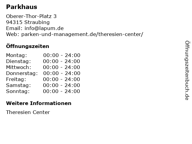 | Öffnungszeiten Parkhaus in Straubing anzeigen | |
