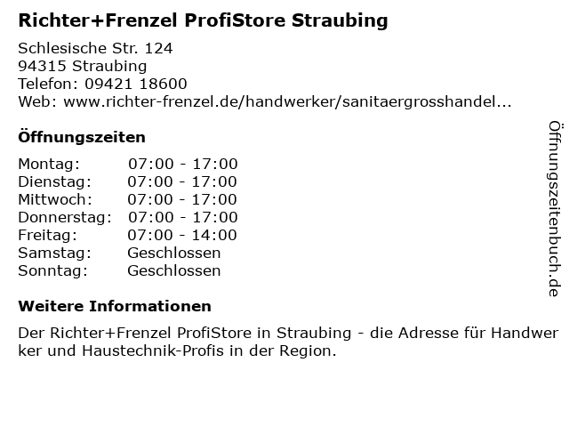 3 Richter+Frenzel ProfiStore Deggendorf (Entfernung: 26,08 km) Konrad-adenauer-straße 12, 94469 Deggendorf 5 Richter+Frenzel ProfiStore Obertraubling (Entfernung: 34,09 km) Ernst-frenzel-straße 4, 93083 Obertraubling 6 |