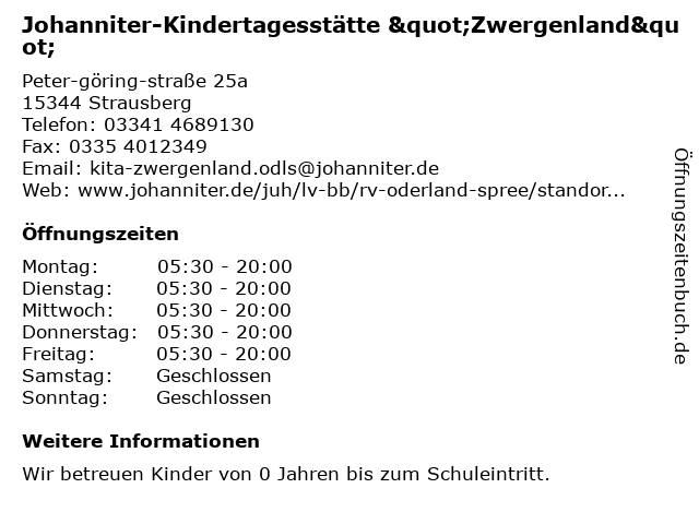3 Johanniter-Kindertagesstätte "Rappelkiste" (Entfernung: 14,72 km) Brückenstraße 77a, 15562 Rüdersdorf 6 Johanniter-Unfall-Hilfe e.V. - Haus der Generationen in Hoppegarten (Entfernung: 16,93 km) Lindenallee 12, 15366 Hoppegarten |