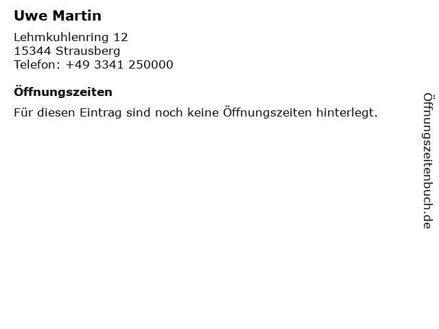 | Öffnungszeiten Uwe Martin in Strausberg anzeigen | |