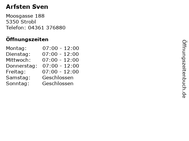 | Öffnungszeiten Arfsten Sven in Strobl anzeigen | |
