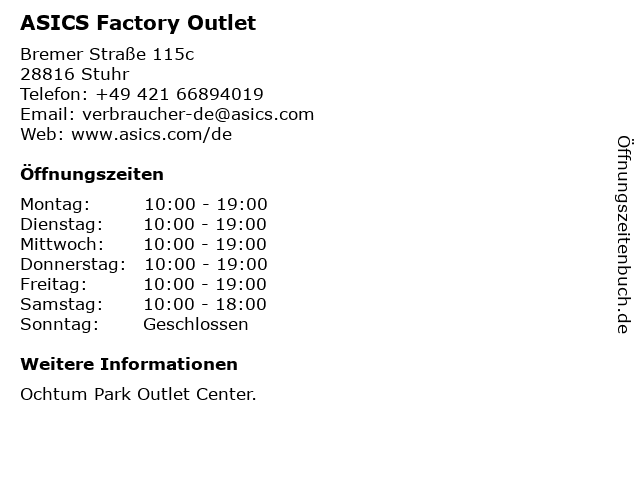 | Adresse ASICS Factory Outlet in Stuhr anzeigen |