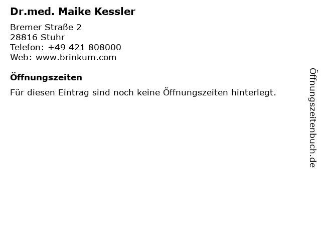 | Öffnungszeiten Dr.med. Maike Kessler in Stuhr anzeigen | |