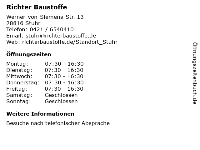 | Öffnungszeiten Richter Baustoffe in Stuhr anzeigen | |