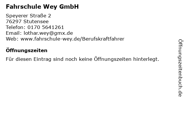 Öffnungszeiten Fahrschule Wey GmbH in Stutensee anzeigen | |