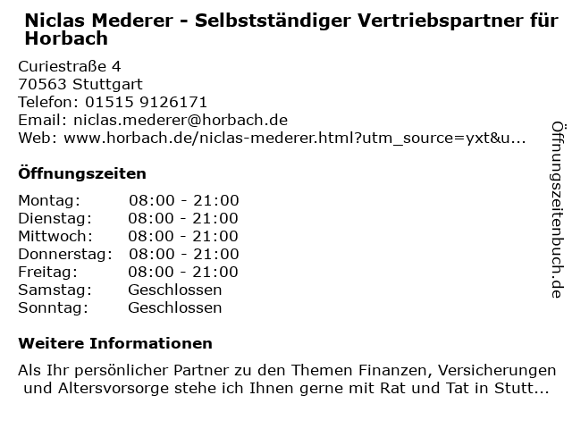 Branchen & Suchbegriffe zu Niclas Mederer - Selbstständiger Vertriebspartner für Horbach:berufshaftpflichtversicherung, berufsunfähigkeitsversicherung, finanzplanung, gebäude- und hausratsversicherung, horbach, investmentservice, lebensversicherung, mederer, mietrechtsschutzversicherung, niclas, pflegeversicherung, selbstständiger, versicherungsberater, vertriebspartner |