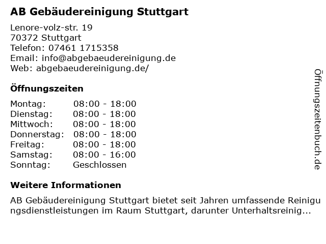 Branchen & Suchbegriffe zu AB Gebäudereinigung Stuttgart:ab, gebäudereinigung |