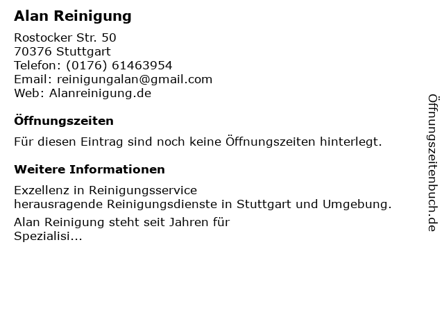 Öffnungszeiten Alan Reinigung in Stuttgart anzeigen | |