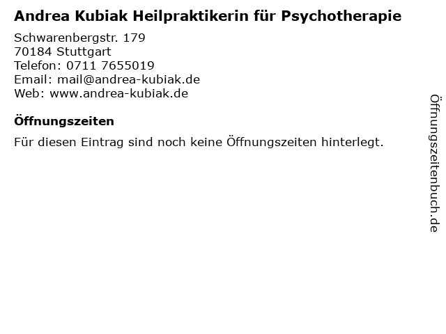 | Andrea Kubiak Heilpraktikerin für Psychotherapie anrufen | |