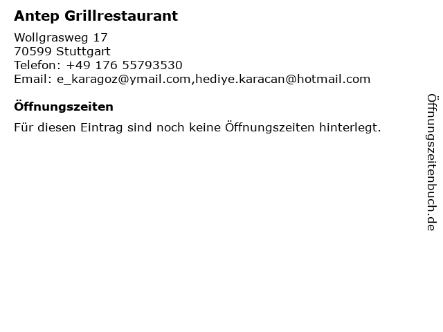 | Öffnungszeiten Antep Grillrestaurant in Stuttgart anzeigen | |