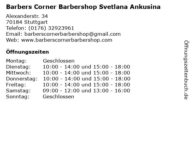 Branchen & Suchbegriffe zu Barbers Corner Barbershop Svetlana Ankusina:ankusina, barbers, barbershop, corner, svetlana |