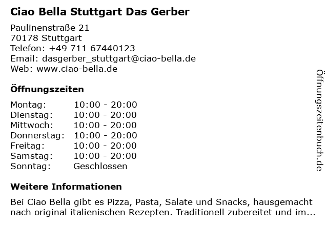Branchen & Suchbegriffe zu Ciao Bella Stuttgart Das Gerber:bella, ciao, gerber, italienisch, pasta, pizza, restaurant, salat, to go, vegetarisch |