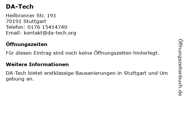 | Öffnungszeiten DA-Tech in Stuttgart anzeigen | |