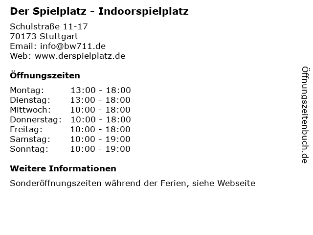 | Öffnungszeiten Der Spielplatz - Indoorspielplatz in Stuttgart anzeigen | |