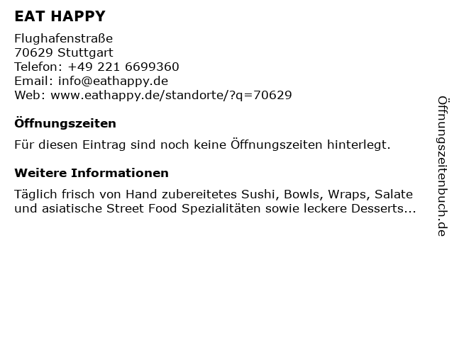 | Öffnungszeiten EAT HAPPY in Stuttgart anzeigen | |