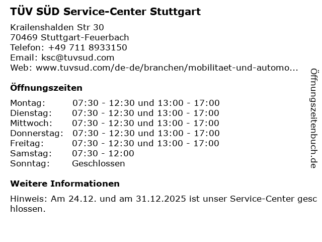 | Freitag | 07:30-12:30 und 13:00-17:00 |