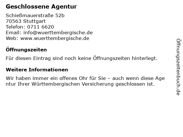 Öffnungszeiten Geschlossene Agentur in Stuttgart anzeigen