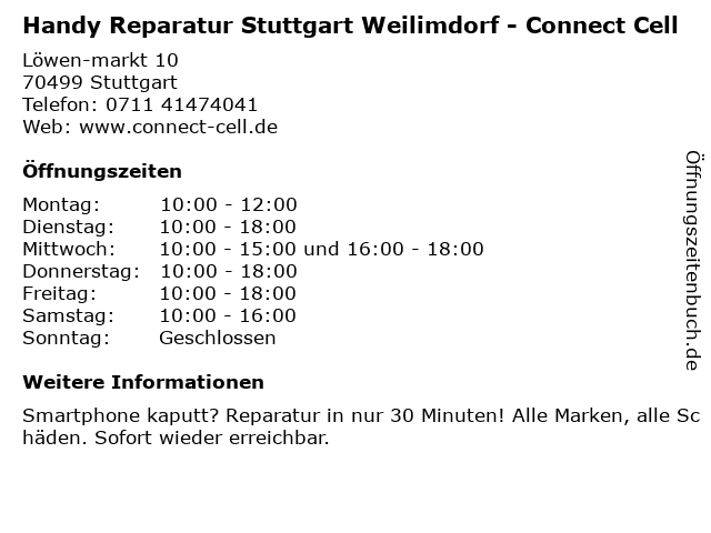 Branchen & Suchbegriffe zu Handy Reparatur Stuttgart Weilimdorf - Connect Cell:anbieter für telekommunikationsdienstleistungen, cell, connect, handy, reparatur, weilimdorf |