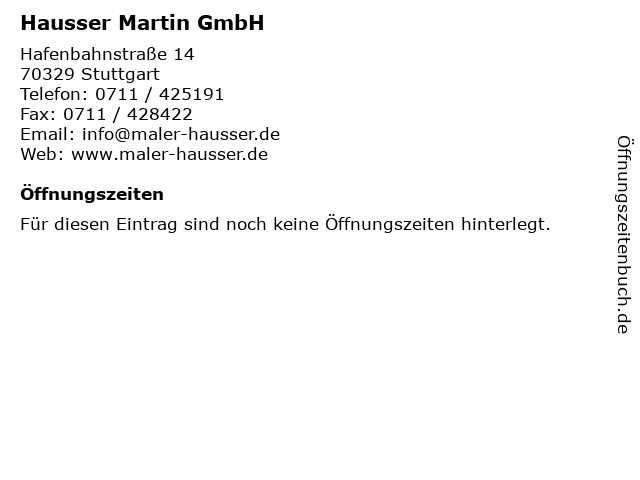 | Öffnungszeiten Hausser Martin GmbH in Stuttgart anzeigen | |