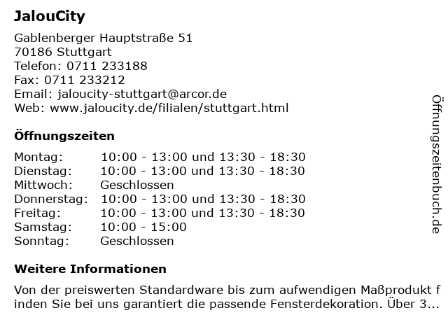 | Freitag | 10:00-13:00 und 13:30-18:30 |